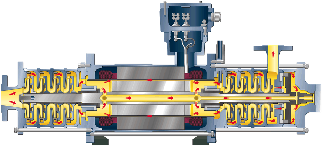 Canned motor pumps designed for extreme conditions, guarantee maximum safety. When liquids and gases have to be pumped at extreme temperatures and under potentially hazardous conditions. We offer complete reliability, even at the highest pressures and performance levels. The second hermetically sealed containment shell of the canned motor pumps offers completely reliable protection against undesired leakage from the pumps. With canned motor design there is no need for the shaft seals, conventional bearings and couplings. The result is a high level of operational reliability, hardly any wear and, consequently, a high MTBR (“Mean Time Between Repairs”) value.
