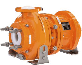 Magnetically coupled pumps are a combination of conventional pump hydraulics with a permanent-magnetic drive system and a three-phase motor. This system uses the attraction and repulsion forces between permanent magnets in both coupling halves for contactless and slip-free torque transmission. Between the two coupling halves equipped with magnets is the can separating the product space from the surroundings. The hermetic leak tightness of the magnetically coupled pumps is ensured by a single-acting safety casing. Magnetically coupled pumps are used particularly for toxic, odour-intensive or otherwise hazardous pumped media as the can shields the medium hermetically from the surroundings.